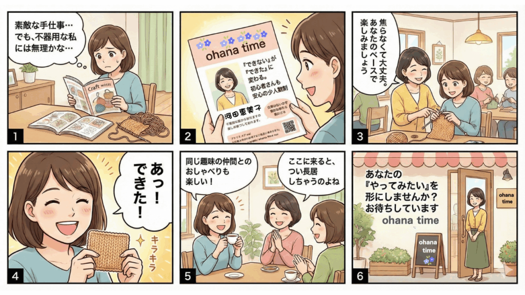 毎日が同じだと感じていたあなたが、「やってみたい」という一歩を踏み出すその時。その瞬間が、私の教室で何かが変わる最初のきっかけになるかもしれません。